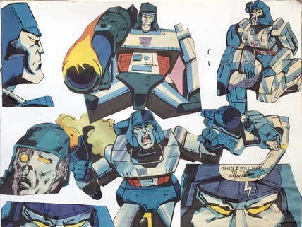 When I was young and foolish I cut up my entire collection of Transformer comics and cut out all my favourite art, I have since replenished my comic collection.